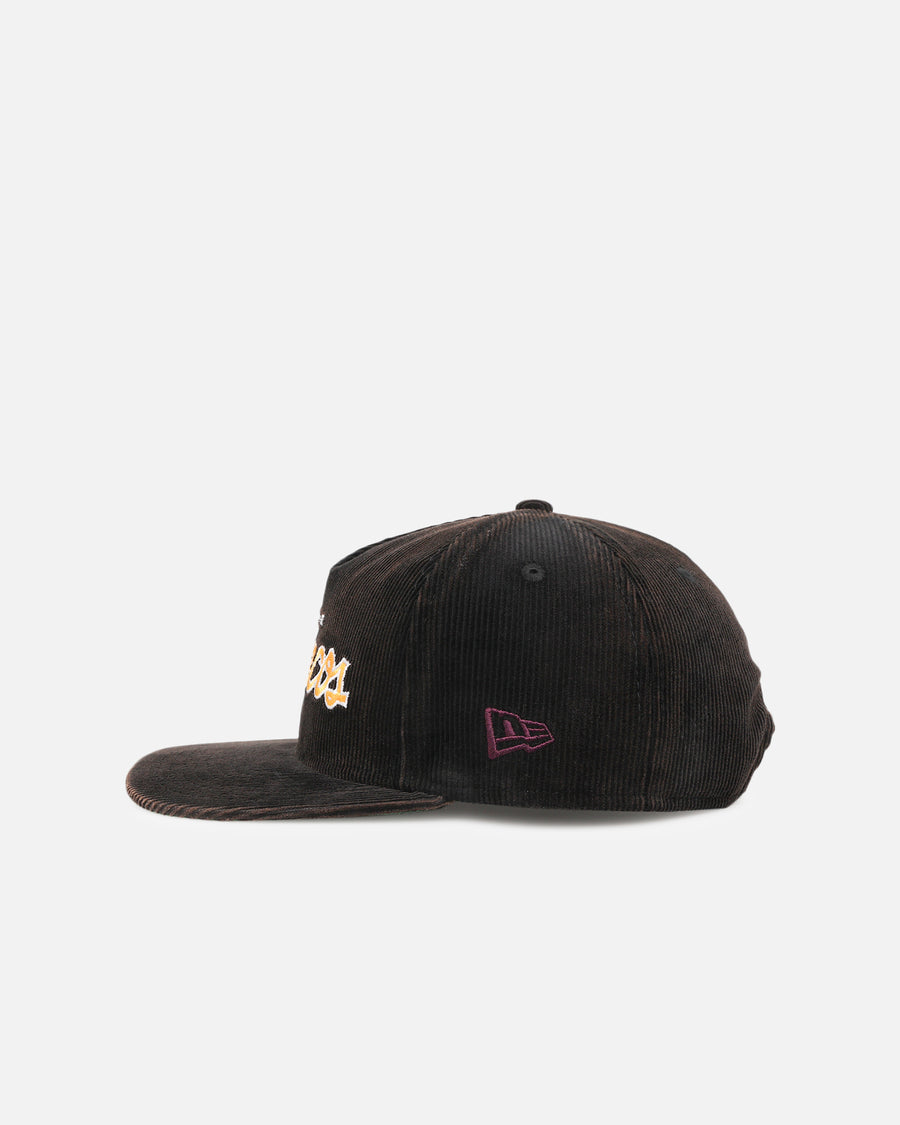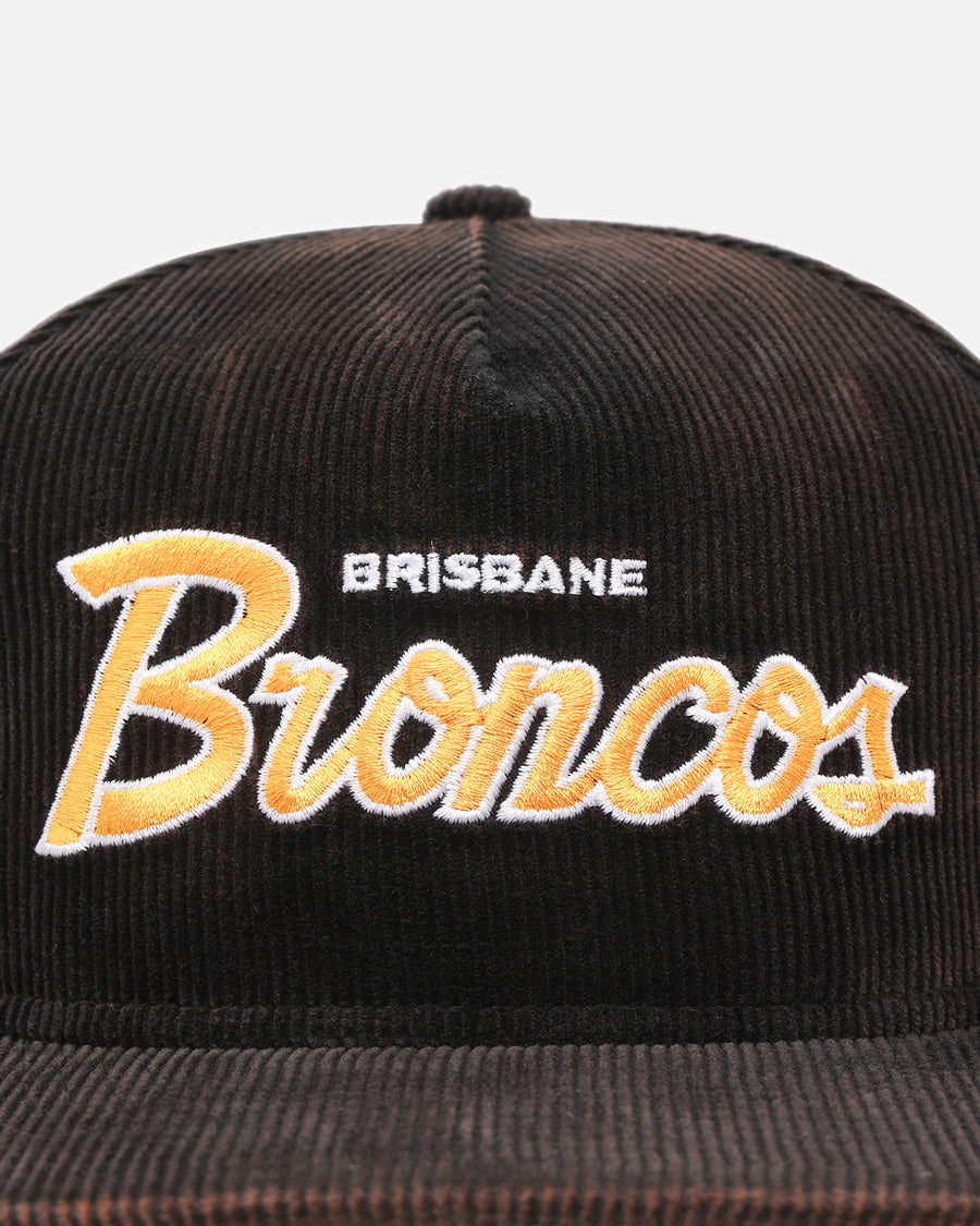 Brisbane Broncos 'NRL Golfer Washed Black' Pre-Curved Corduroy Golfer Snapback