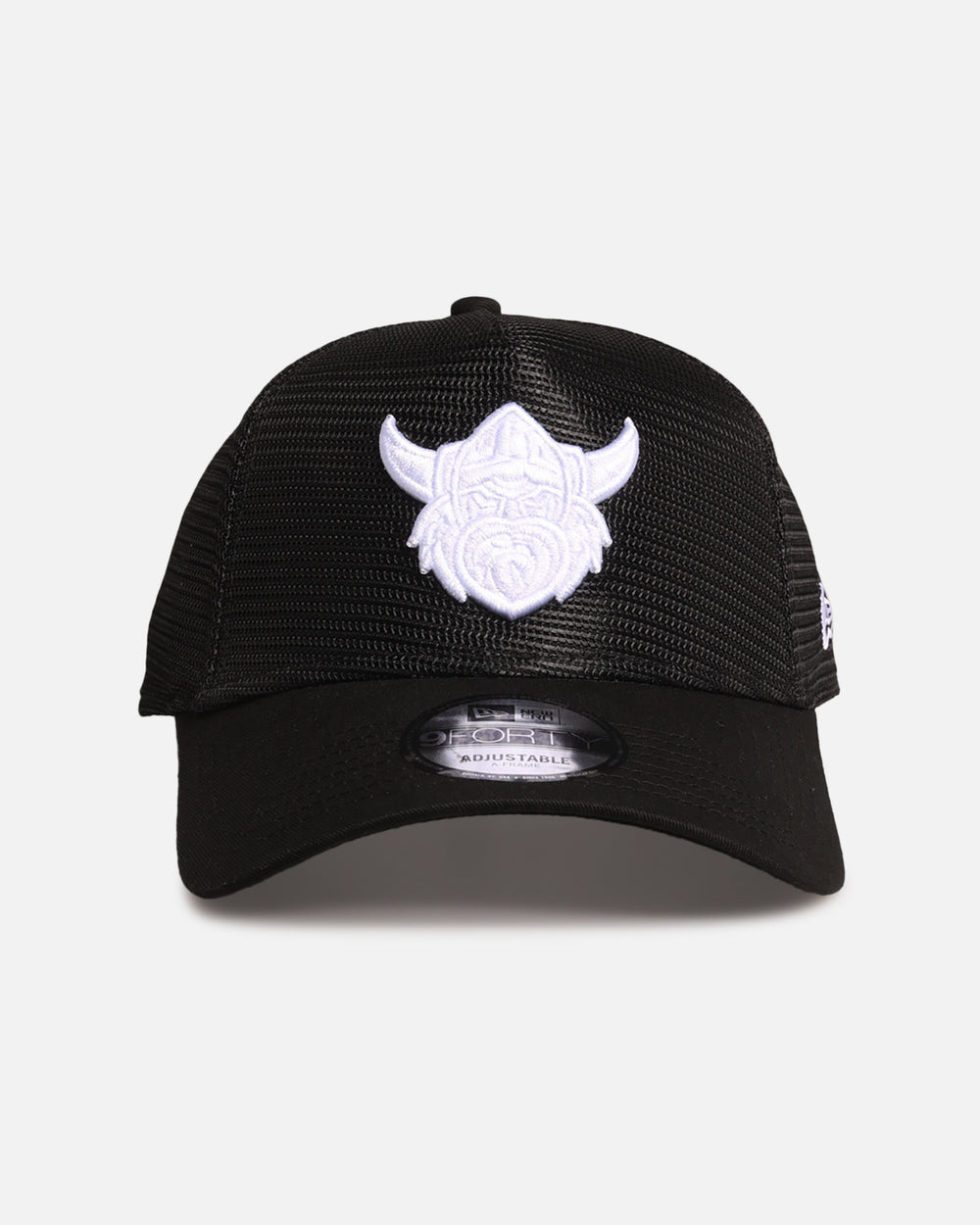 The New Era 9FORTY® A-Frame™ Trucker is an adjustable snapback style that merges the front two crown panels into one, creating a high-profile pinched shape.