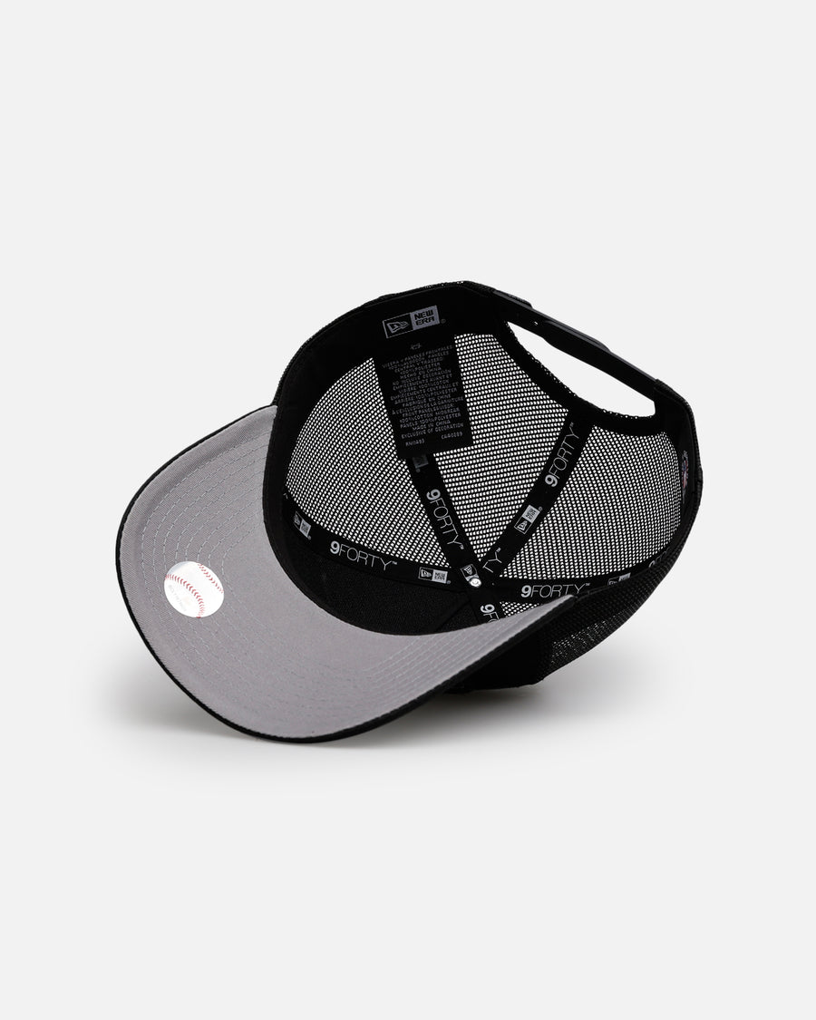The New Era 9FORTY® A-Frame™ Trucker is an adjustable snapback style that merges the front two crown panels into one, creating a high-profile pinched shape.
