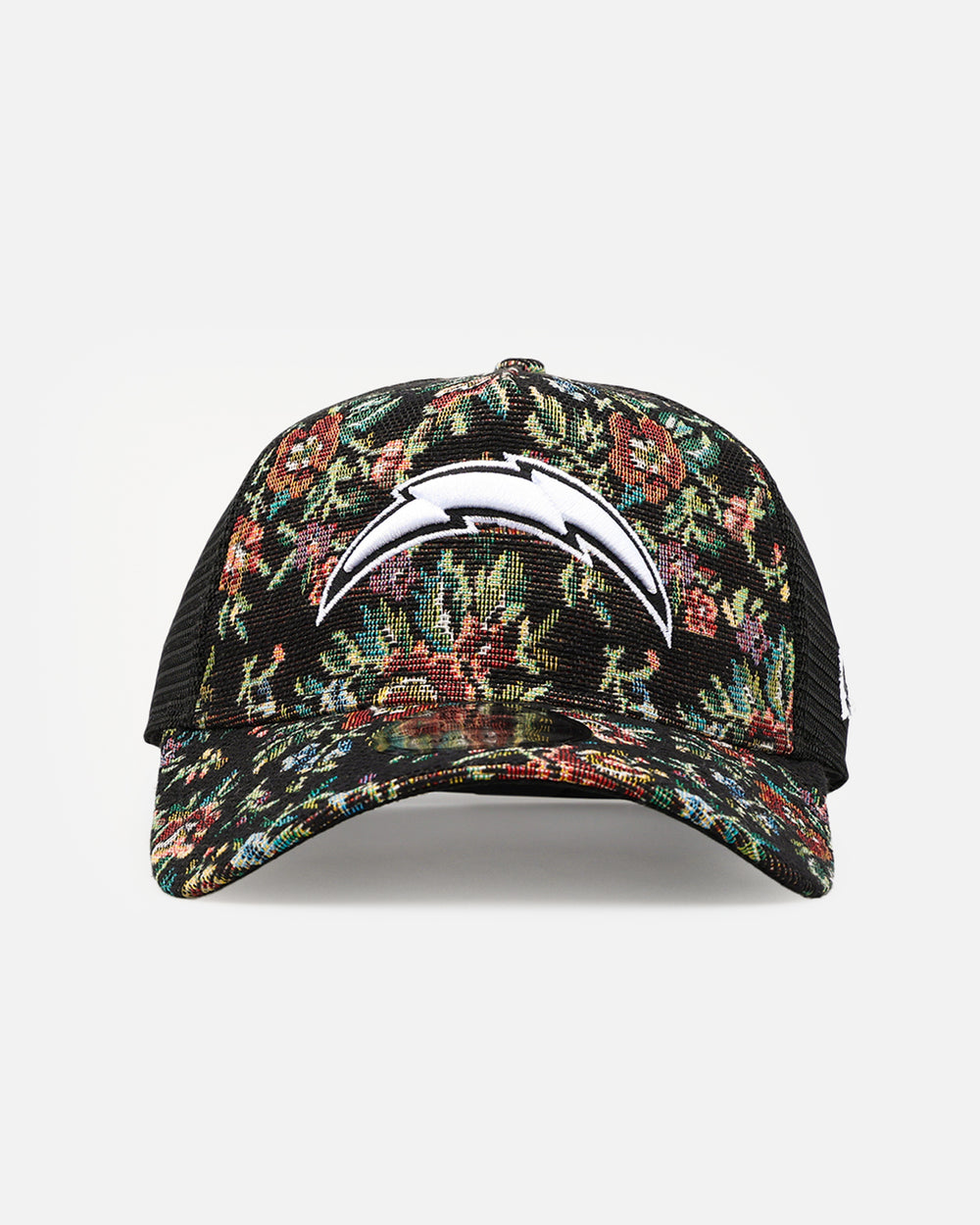 Los Angeles Chargers 'Black Floral Tapestry' 9FORTY A-Frame Trucker Snapback