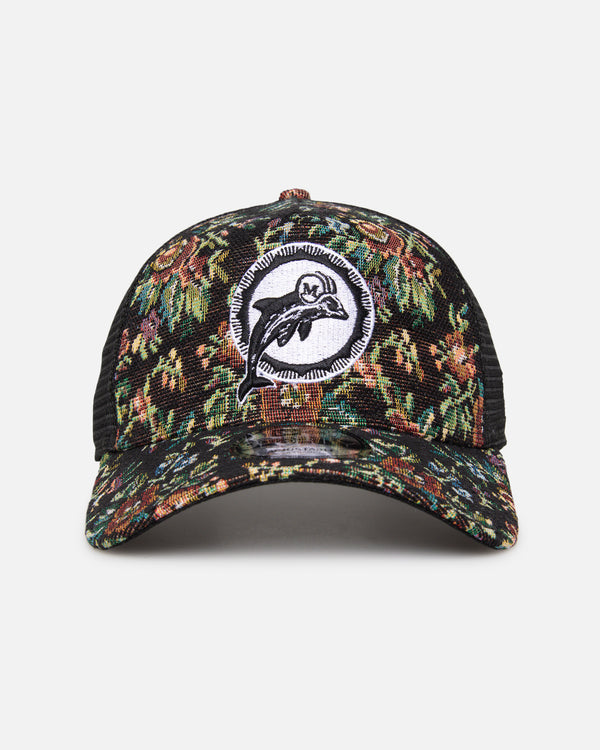 Miami Dolphins 'Black Floral Tapestry' 9FORTY A-Frame Trucker Snapback