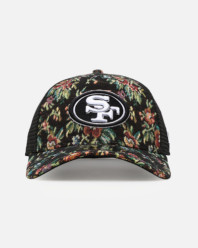 San Francisco 49ers 'Black Floral Tapestry' 9FORTY A-Frame Trucker Snapback