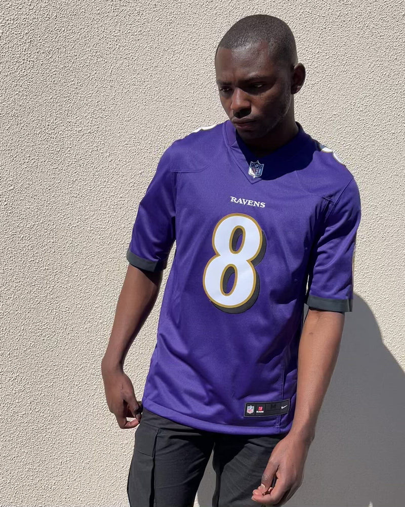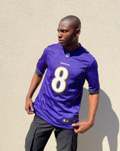 The Baltimore Ravens Lamar Jackson #8 Limited NFL Jersey is a premium supporters garment with tackle and twill applique player name and numbers.