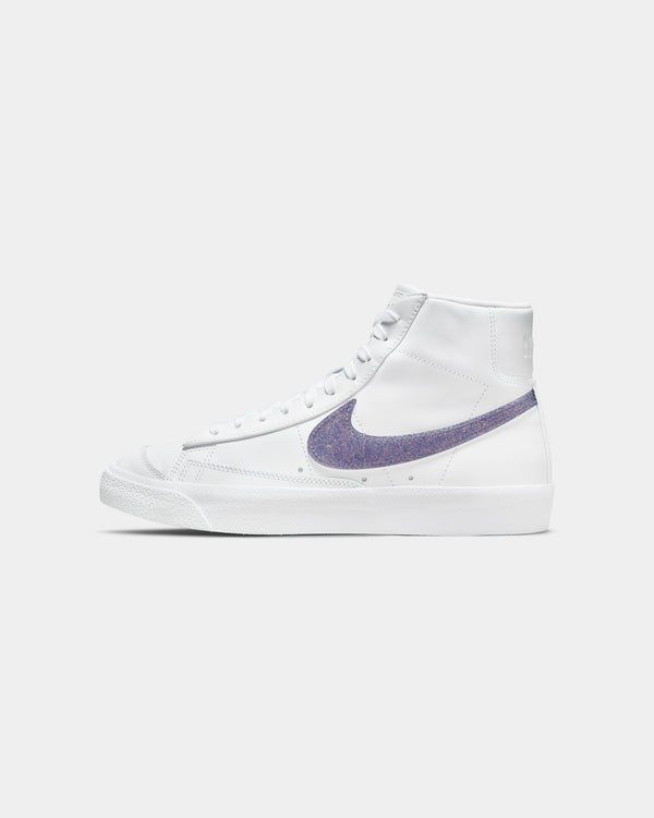 Nike brings you vintage-inspired style, comfort and a big attitude through the Women's Blazer Mid '77 Essential. Featuring a crisp leather upper, glittery purple Nike Swoosh logo accents, a vulcanised rubber sole, and premium construction built to last and keep you comfortable in any fit.