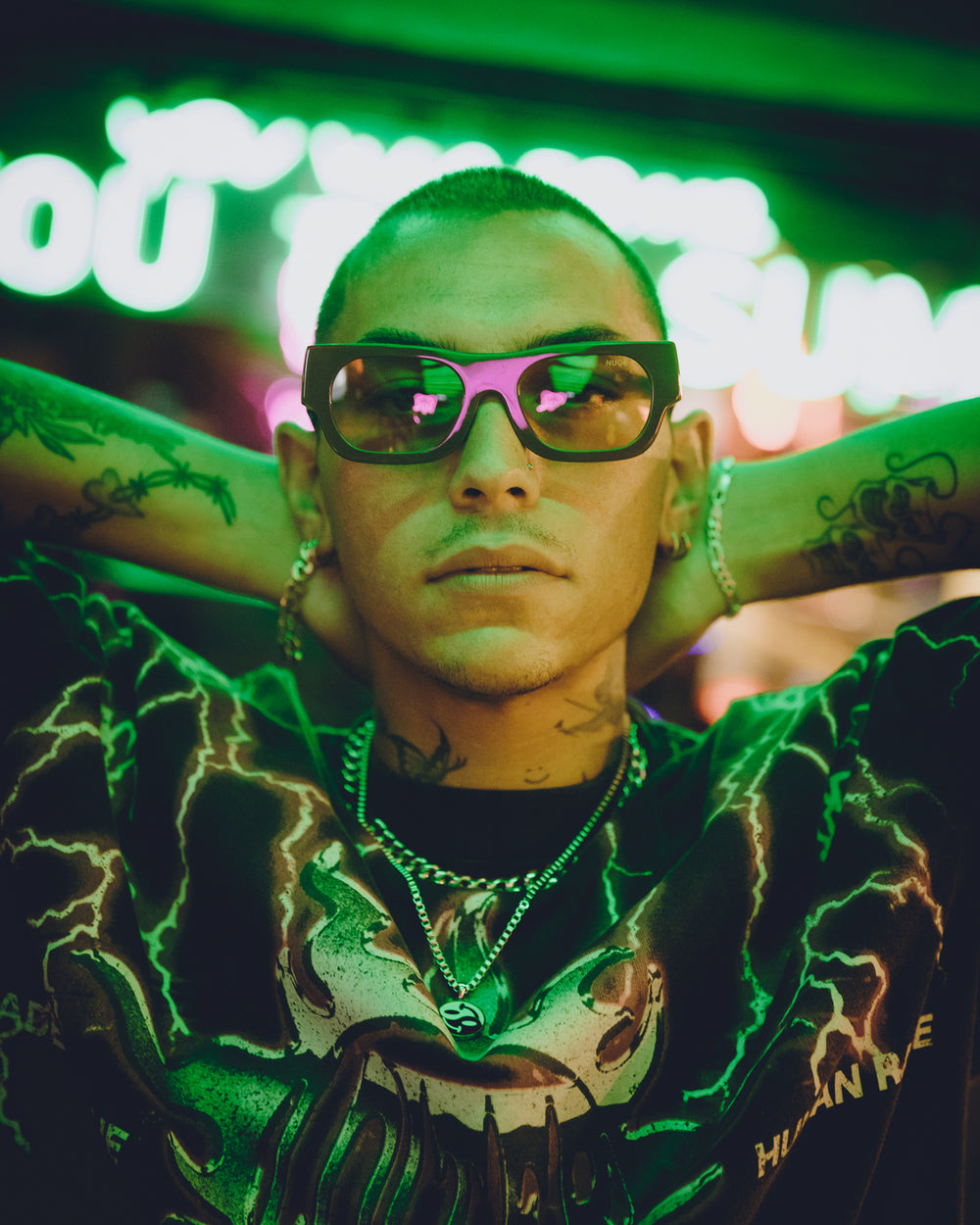 - NUQE logo embossed on the lens