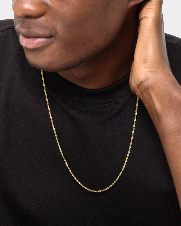 The NXS 2mm Rope Necklace is the luxe, minimalistic detail you need to finish off any 'fit with a touch of ice. A fine, rope chain makes for an intricate addition to your accessories, boosting every look. With a stainless steel base and 18K gold plating for that must-cop vibe. Get your hands on this today.