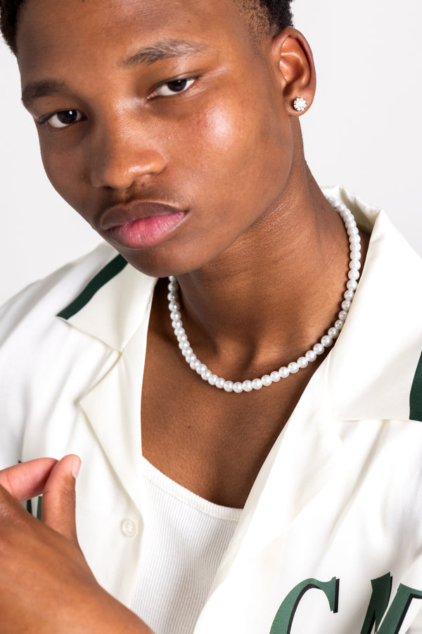 Add a touch of class and style to your 'fits with the Pearl Necklace by NXS. This necklace features 7mm glass pearls with a stainless steel base and finished off with a lobster clasp closure. This is the one to cop, grab it today at Culture Kings.