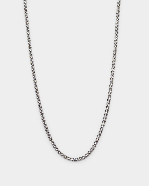 Add some luxe to your rotation with the Wheat Chain by NXS. This go-to, timeless piece is perfect for any occasion, wear it on it's own for a minimalistic look or deck it out in pendants to heat things up. This chain lets pendants move freely without changing the appearance of the chain, meaning no need to worry about any twists or kinks. The 18k white gold plated stainless steel base and 3mm wide chain bring it all together. Cop it today at Culture Kings.