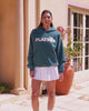 Olivia is wearing a men's size M for a relaxed fit.