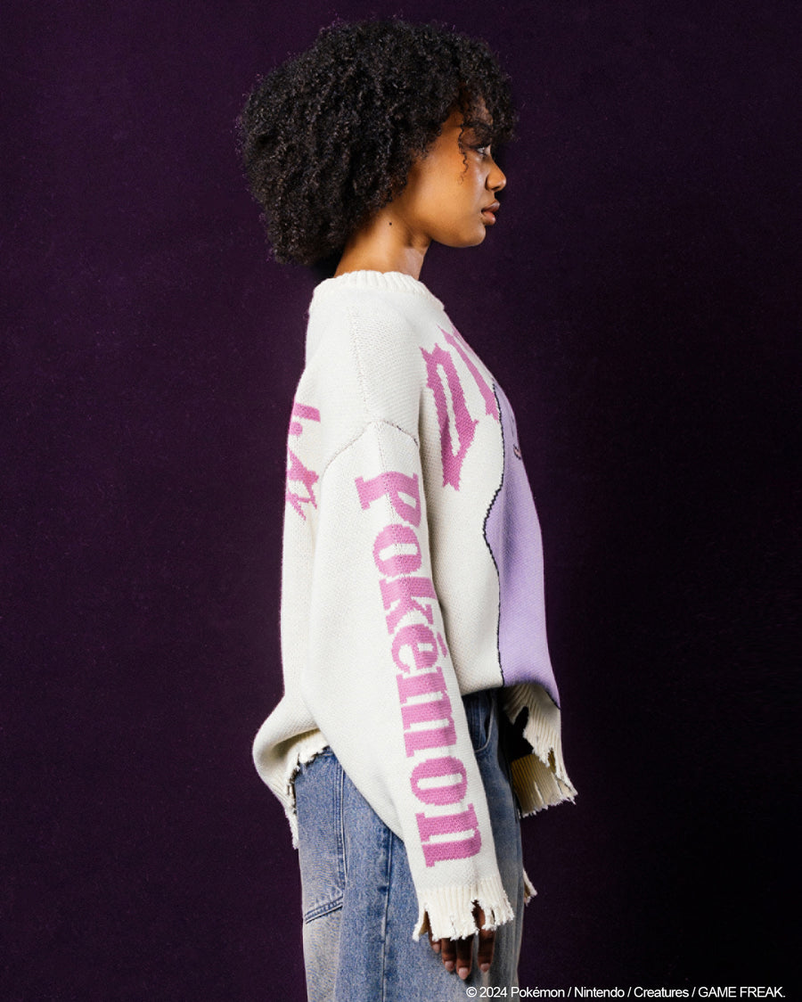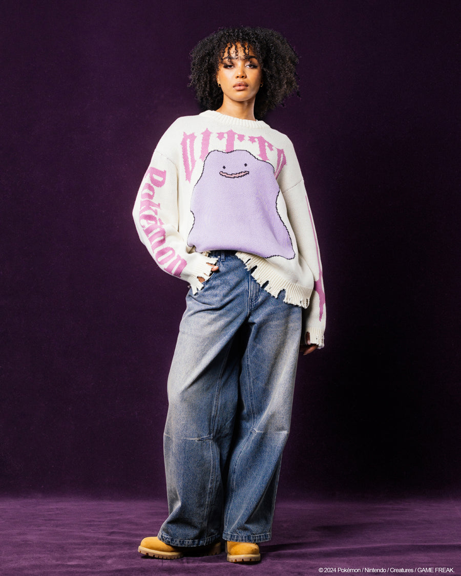 Get a look that you'll love while repping one of your favourite Pokémon with the Pokémon By Loiter collection. This sweater stands out with knitted graphics showcasing Ditto, set against an irresistibly soft and cosy construction. Complete with distressed edges and ribbed trims, this sweater not only ensures comfort but also delivers an elevated look that you'll love. Get in quick and catch yours today before it's too late!