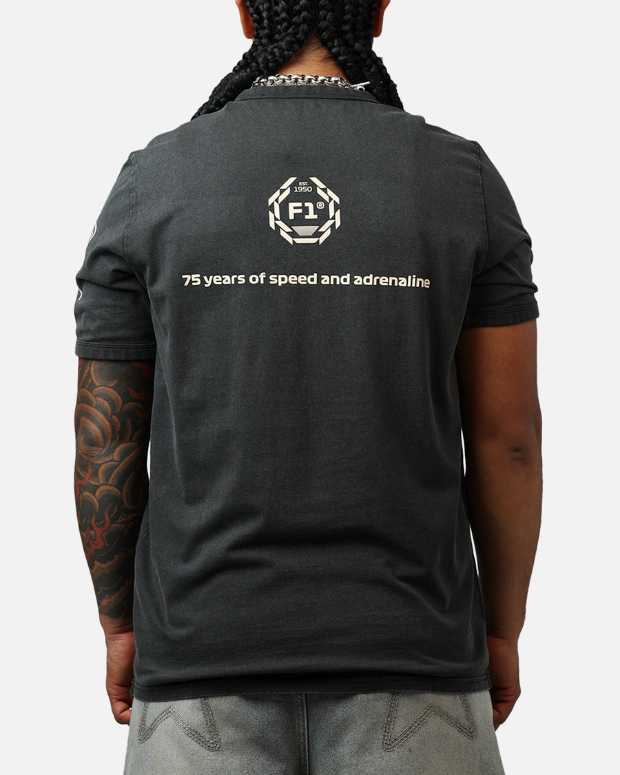 Celebrate 75 years of speed and adrenaline with this PUMA tee. Featuring a washed surface, ribbed crewneck, twin needle stitching, and bold F1® and PUMA Cat logos, it's the ultimate blend of racing heritage and modern style. Cop yours today at Culture Kings.