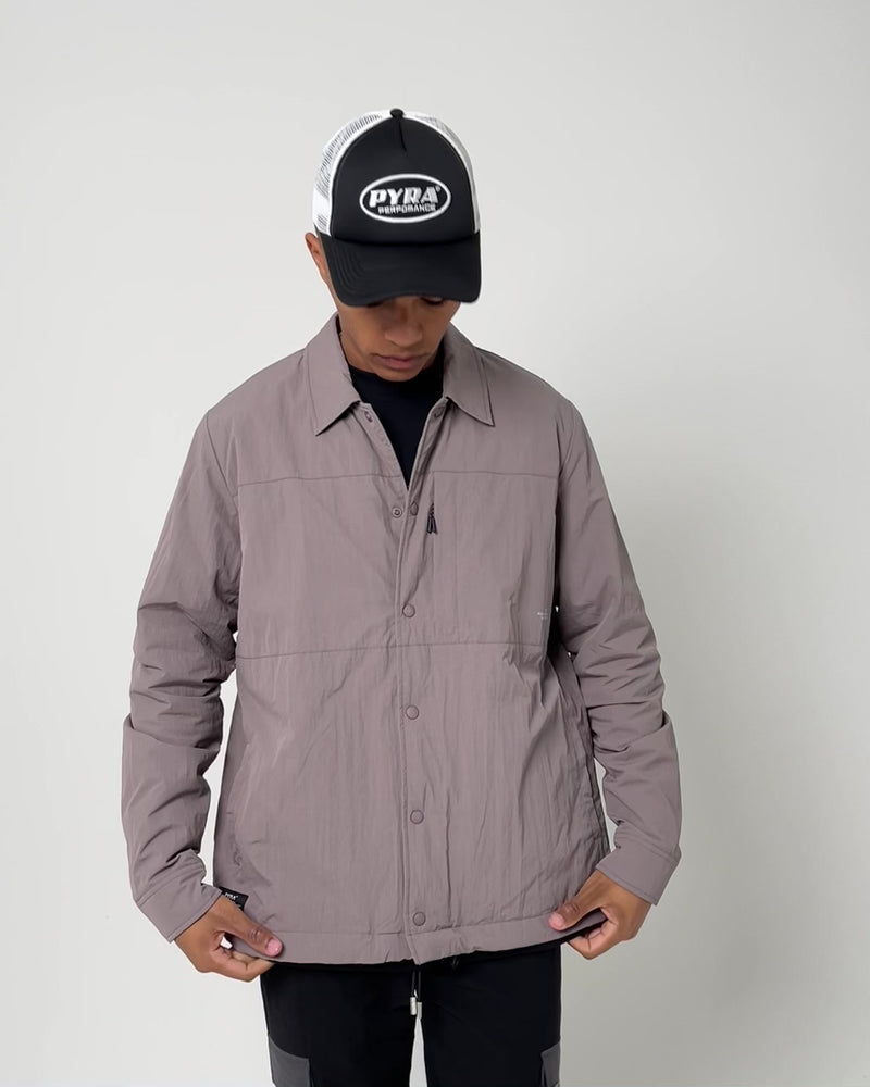 PYRA delivers premium streetwear aesthetic, offering garments that are made to last beyond the seasons. The Ivory Coach Jacket features a premium and lightweight fabrication with optimum durability. The perfect layering piece. Featuring iconic PYRA branding and a button-down closure for easy on-and-off and personalised style.
