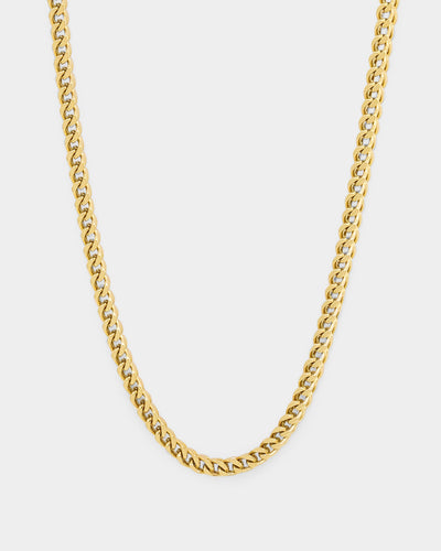 The Franco chain is a round chain link made with a complex design that offers strength and durability, and to luxe it up even more they’re perfect for pendants to take your look to the next level. Smaller Franco chains (2-3mm) are well-suited to most pendants, while the larger (4mm+) Franco chains are better suited to bulkier pendants where movement is still desired.