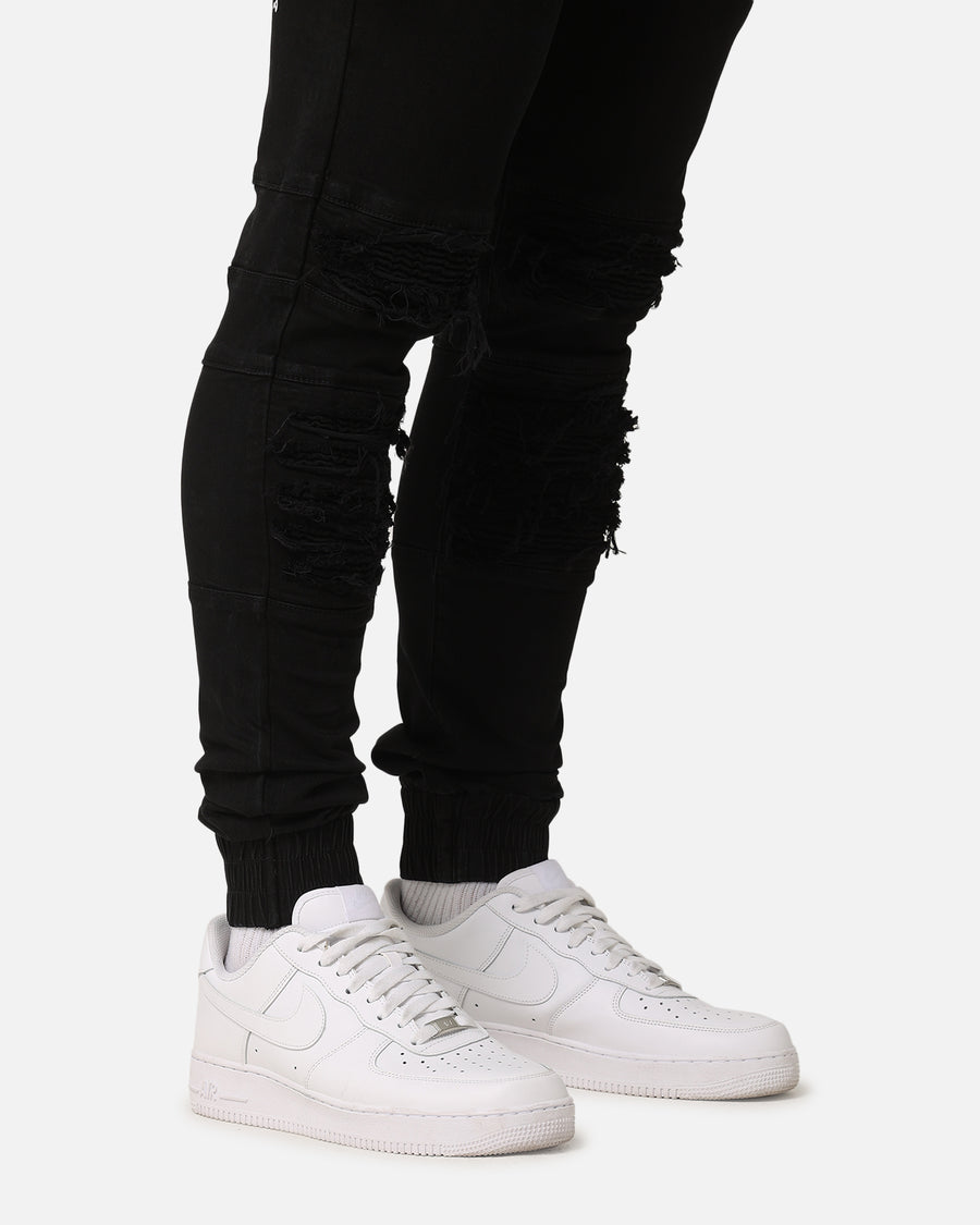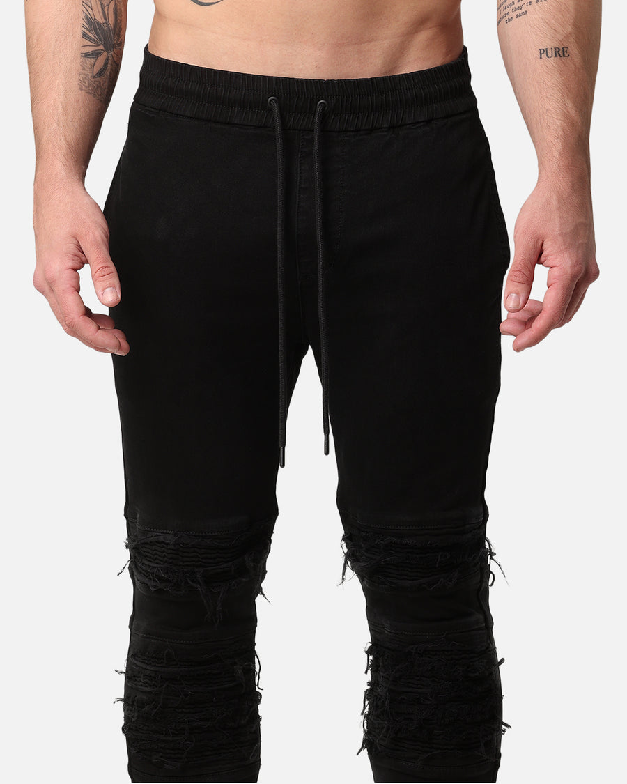 Saint Morta has delved deep into their bag of tricks and produced a pair of pants that will have you covered when you need it most. The Abolished Joggers feature an elastic waist with drawcord, dual front and rear pockets, Saint Morta print on the back pocket, tapered fit through the legs, and heavily distressed biker style panels above and below the knee. Cop yours today.