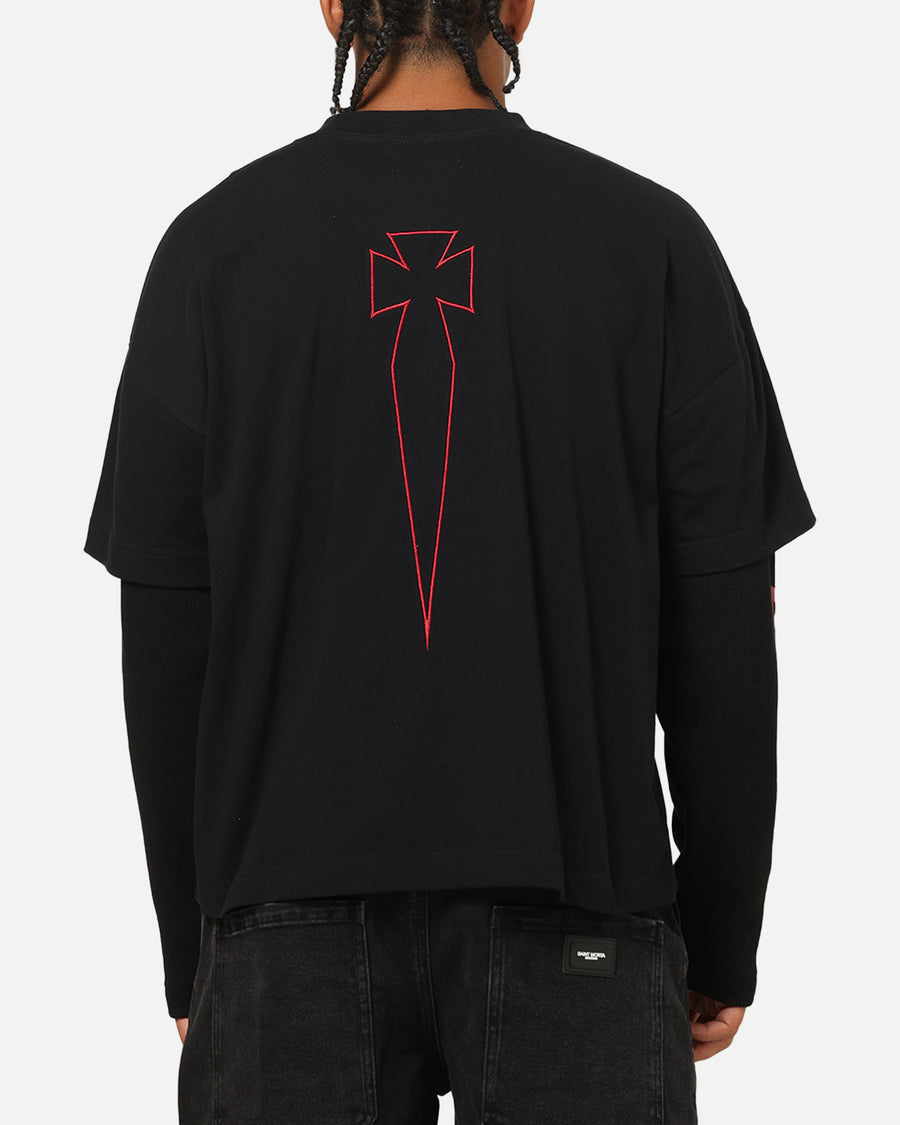 Elevate your everyday looks with this powerful Saint Morta long sleeve tee. Printed graphics, dropped shoulders, twin-needle stitching, and contrast waffle knit long sleeves, that makes this piece a wardrobe essential that you won't want to go a day without. Be sure to secure yours today while stock lasts.