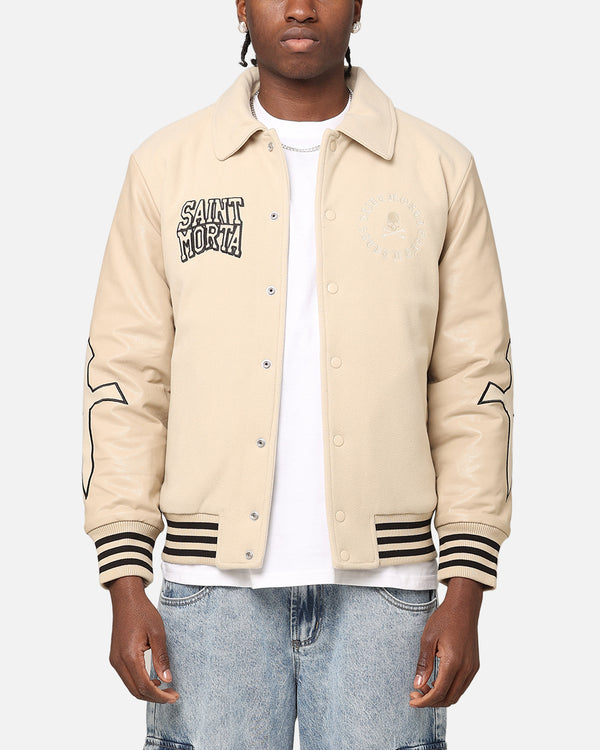 Stay warm while looking fresh with the Ceremonies Varsity Jacket by Saint Morta. This jacket features a mix of embroidered graphics and chenille appliqués that'll get you all the compliments, contrast cuffs and hems add a little something extra and the snap button closure finishes off the classic varsity jacket vibe. Cop yours today at Culture Kings.