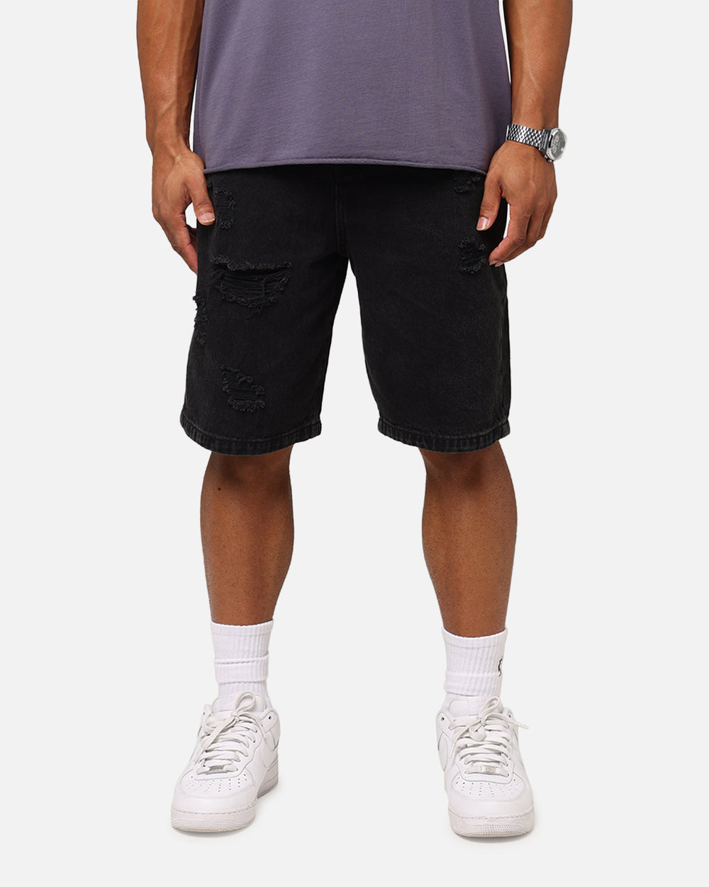 Have all eyes on you in the Disrupt Denim Shorts by Saint Morta. Featuring distressed detailing throughout the front and a vintage wash with a rigid premium cotton denim construction lets you know that this style was made to last. Don't sleep on this pair, cop it today.