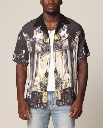 This one's sure to be heavy in your rotation. Featuring all-over graphics that are sure to make a statement and a contrast collar for an eye-catching detail, all on a lightweight viscose construction that moves with you. Be sure to cop yours today before it's too late.