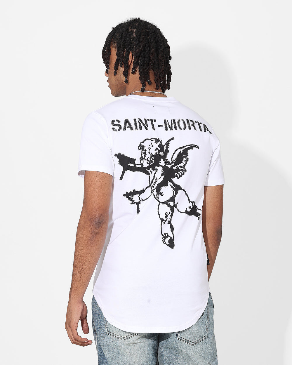 Meet your new go-to tee. Featuring printed graphics on an ultra comfortable cotton construction with a rounded hem for a tall tee vibe. Don't miss out on adding this one to your rotation and cop it today.