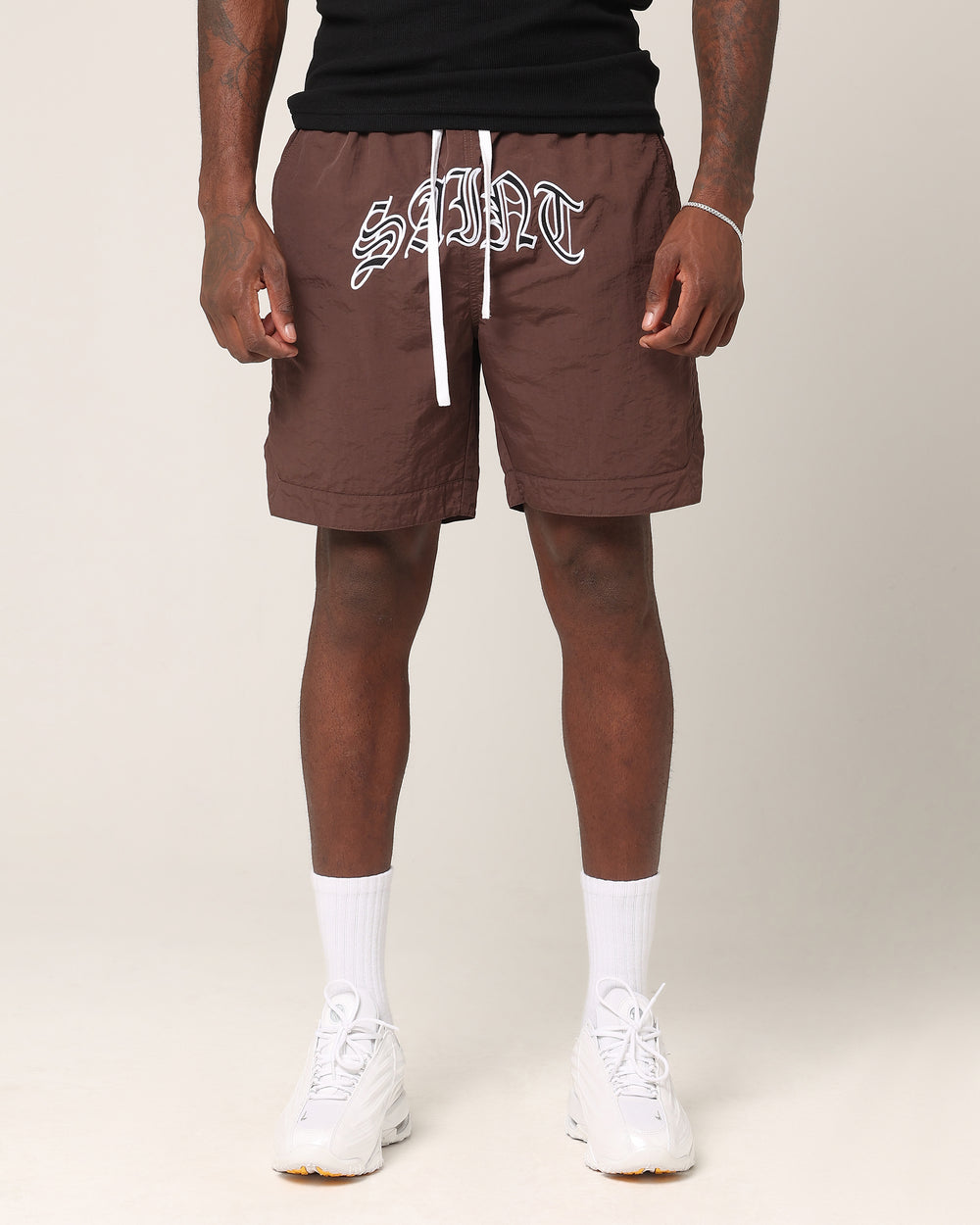 Whether you're going out or staying in, the Lucius Shorts have got your back. Featuring an ultra-comfortable elasticated waist with an adjustable drawstring for that perfect fit and an embroidered Saint Morta appliqué across the front to rep your fave brand. Cop them today