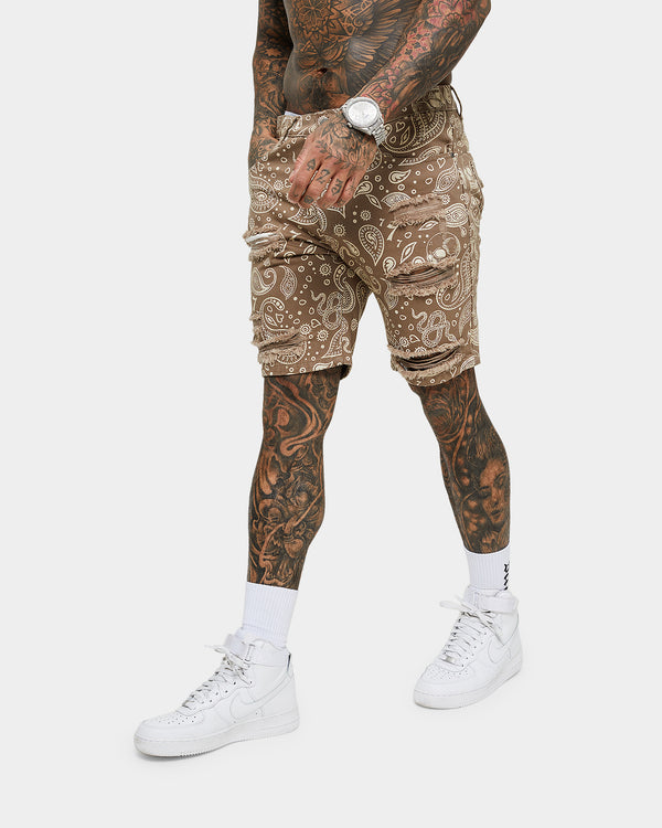 The Paisley Skulls Denim Shorts are going to elevate your street style. The all-over skull and paisley print gives them an added flair and the signature Saint embroidery tops them off.