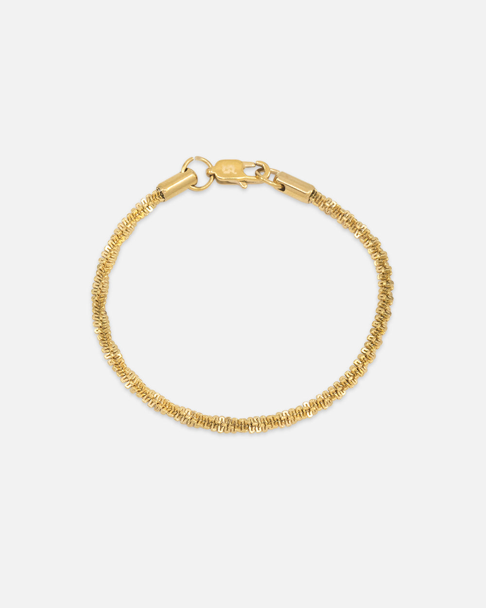 Level up your 'fits with the Popcorn Bracelet by Saint Morta. Crafted from a 18k gold plated with a stainless base with popcorn-cut links and an engraved log, this piece looks worn in for a standout look that can't be beat. This is a must-have piece, grab yours today before it's too late.