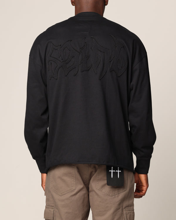 Kick it up a notch with the Rodeo Metal Oversized Long Sleeve T-Shirt. Featuring a unique monotoned embroidery to the chest with an old-school metal twist, this tee is bound to liven up your fits this season. Constructed with soft cotton and double stitching to ensure comfort and durability. Cop yours today.