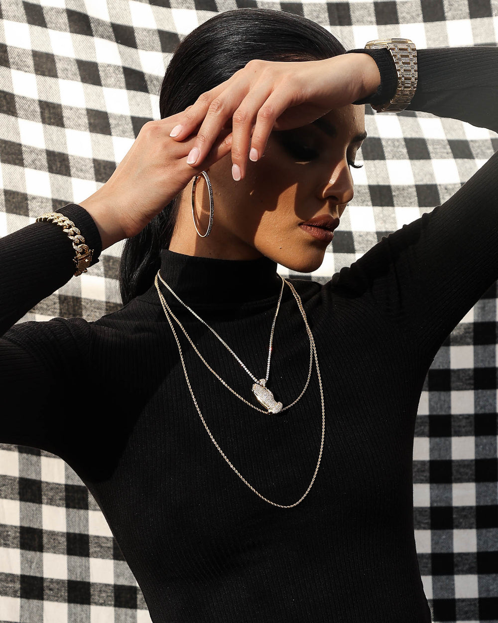 A fresh and eye-catching cross to add to your collection, Saint Morta brings you the Iced Praying Hands Pendant. The handset stonework brings a level of extravagance to your chain, adding a shine that'll put a spotlight on any 'fit. This pendant fits perfectly on our Saint 3mm Micro Cuban Chain, Saint Micro 20" Tennis Necklace or Saint 2mm Rope Chain.