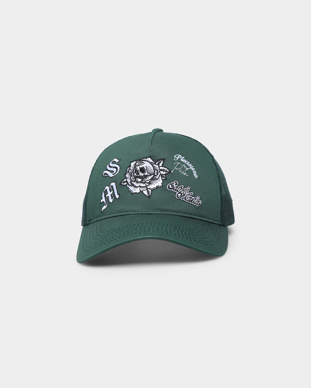Cop the heat with Saint Morta's Skull Flower Trucker Snapback. With 3D embroidered Saint Morta graphics on the crown and mesh panel ventilation to keep things cool, this trucker will take your look to a whole-'nother-level.