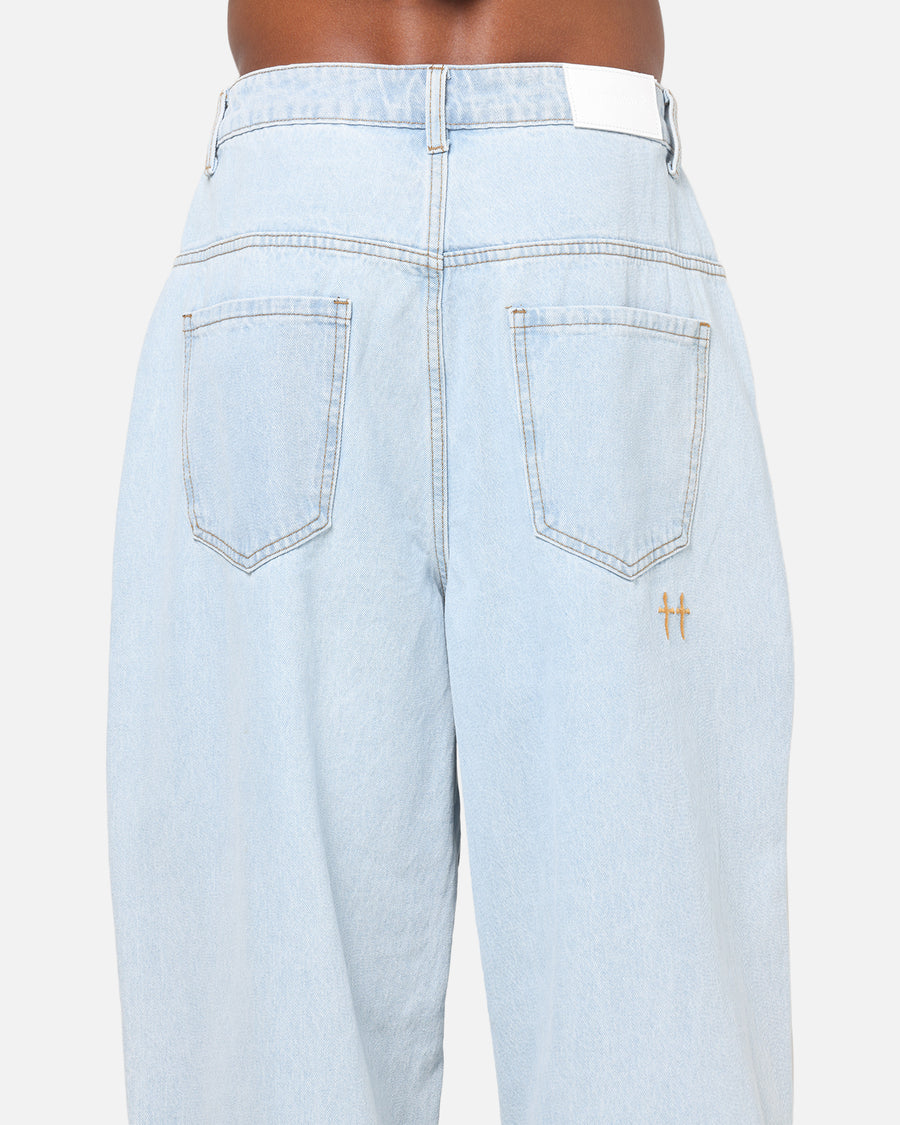 What screams streetwear more than some baggy denim? That's where the Umbra Jeans have you covered. A simple yet classic look is created with the washed denim and longer length that helps it fall just right. Finished with pleats at the knee and zip closure for a classic fit. Cop yours today.