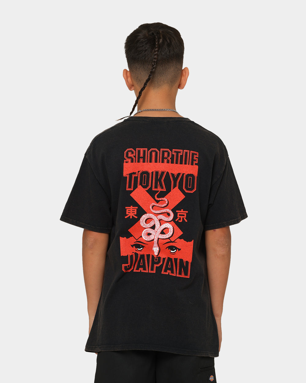 Your kid will stand out from the crowd with the Tokyo T-Shirt from Shortie. With a custom Tokyo-inspired graphic to the front and back, and an acid wash that creates a vintage look and feel. Paired with a premium twin-needle construction built to last, you'll both love this tee!