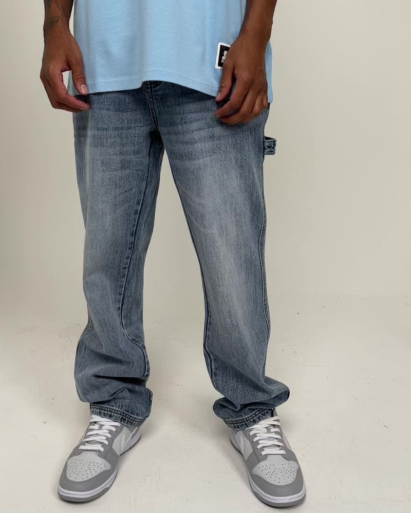 Daniel is wearing size 34 for a standard fit. The straight leg provides a relaxed look.