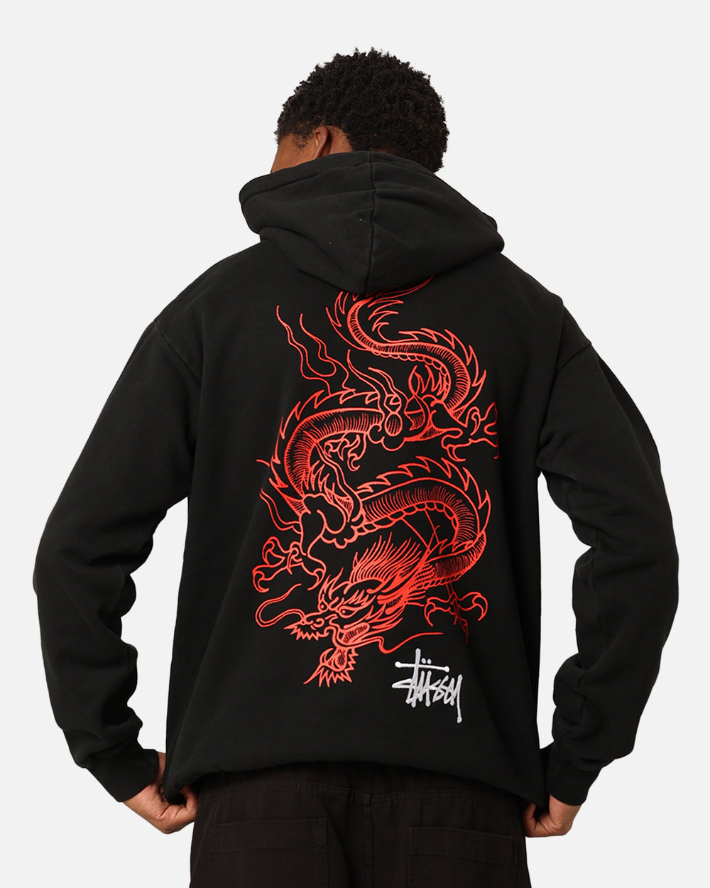 Start the Year of the Dragon off right with the Dragon Hoodie by Stüssy. Custom printed graphics pairs perfectly with the embroidered Stüssy branding, giving you a textured look that's sure to make a statement. Ribbed trims and dropped shoulders make sure you get a flattering fit every time. Get in quick and secure yours today at Culture Kings.