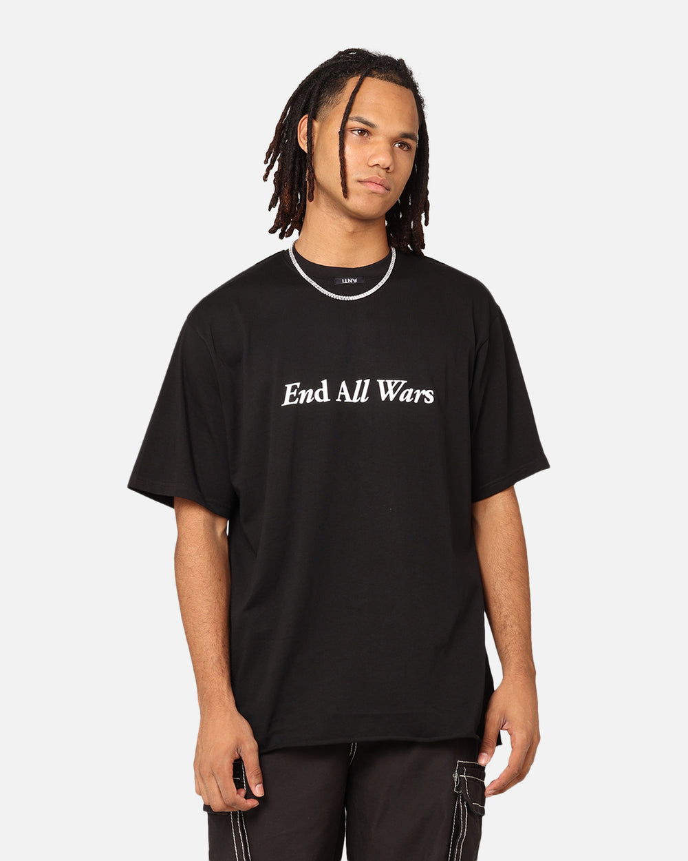 Make a statement in style with the Anti War Baggy T-Shirt. Designed with a raw hem for an edgy vibe, printed graphics that let you take a stand and twin-needle stitching so your message can live on. This is a must cop piece, get yours today before stock runs out.