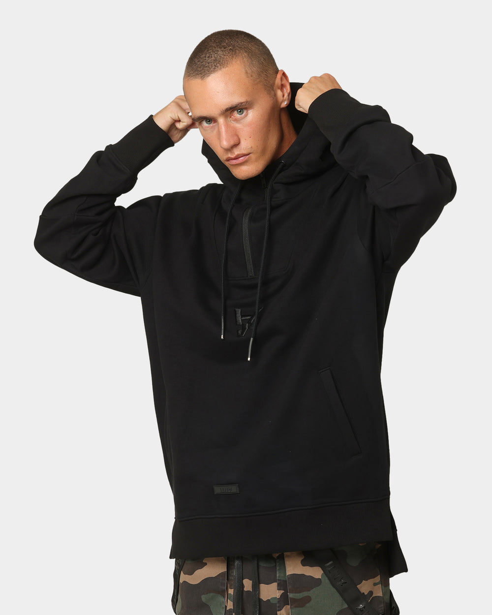 Hide in the shadows with the Anti Order Shvdows Hoodie. The side splits in the hem separates the longer back hem from the front for a loose fit, with embroidered graphics and a quarter-zip finishes off the hood.
