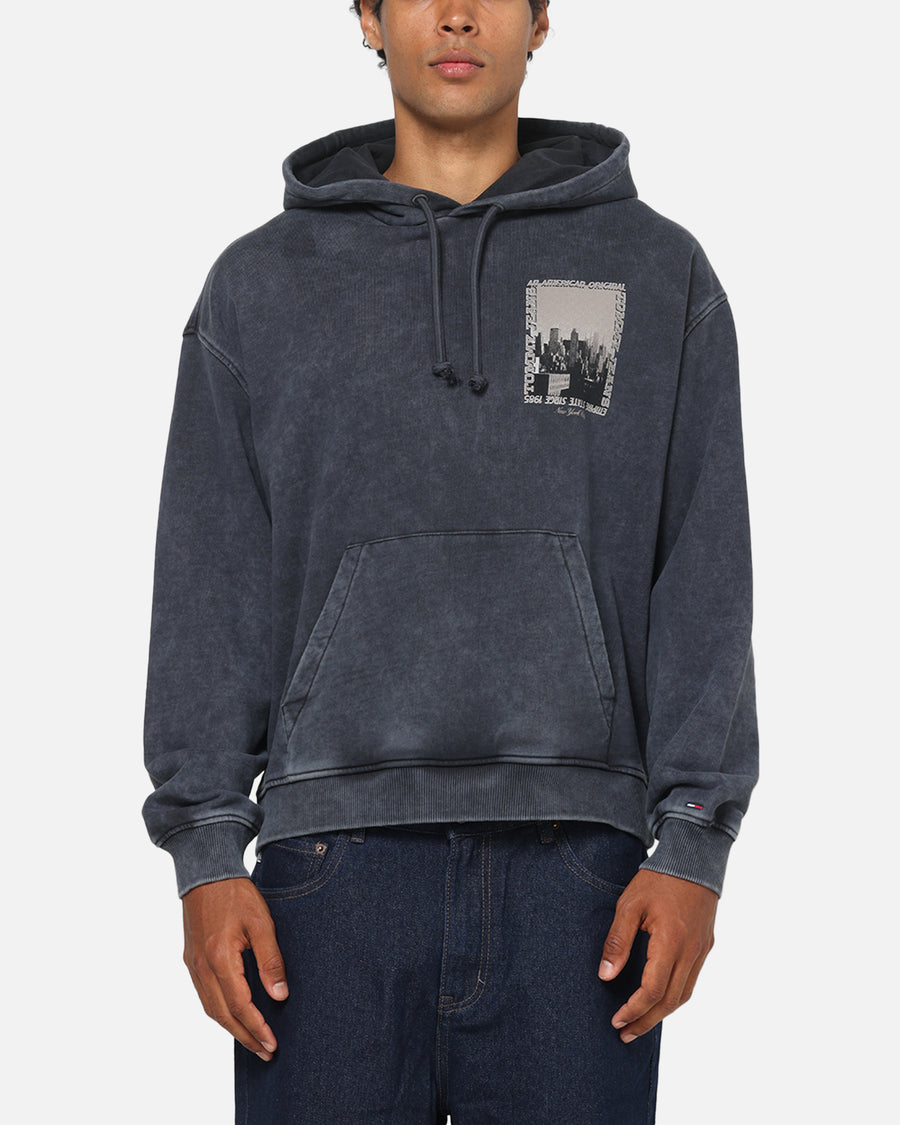 Stay warm while looking fresh with the Tommy Jeans Washed Photo City Hoodie. Decked out in printed brand graphics to mark your style and love of the brand. With ribbed trims and dropped shoulders for the laid back street vibe. The perfect addition to your wardrobe and cop yours today.
