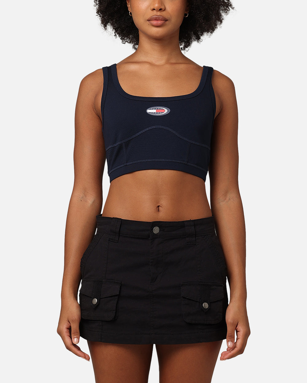 Cute, comfortable, and right on trend. Tommy Jeans is back with another drop and this is for the girls on the move. The Women's Archive Bralette Crop Top features a printed brand logo in the centre and contrast stitching for the perfect piece whether you're heading to the gym or heading to brunch. Completed with a Stretch Stretch EcoVero™ viscose blend that makes this super comfortable for any occasion. Cop yours today.