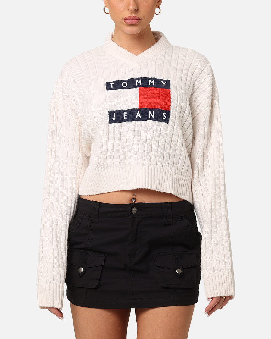 Get a touch of luxe into your wardrobe with this super cute drop from Tommy Jeans that's just landed at Culture Kings. With a knit construction and cropped hem, the Women's TJW V-Neck Center Flag Sweater is finished off with the iconic woven knitted Tommy logo and ribbed trims. Cop it today at Culture Kings.