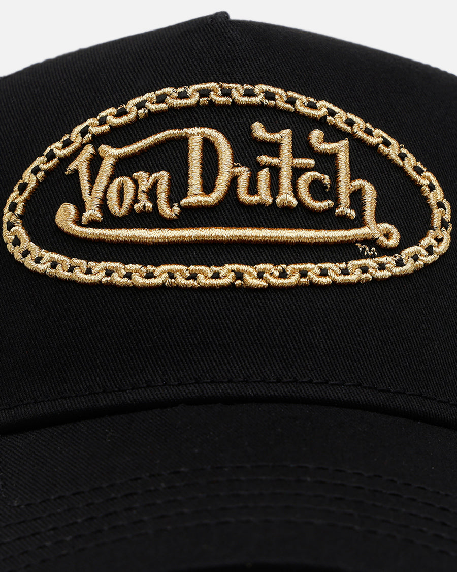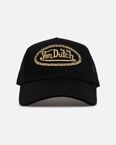 Finish off your 'fits with Von Dutch's fire new headwear drop. The Chain Trucker Snapback is built to last and look good doing so, featuring an embroidered logo, a snapback closure and a pre-curved brim, this piece is a must-have. Mesh back panels add breathability and that classic trucker feel. Secure yours today at Culture Kings while stocks last.