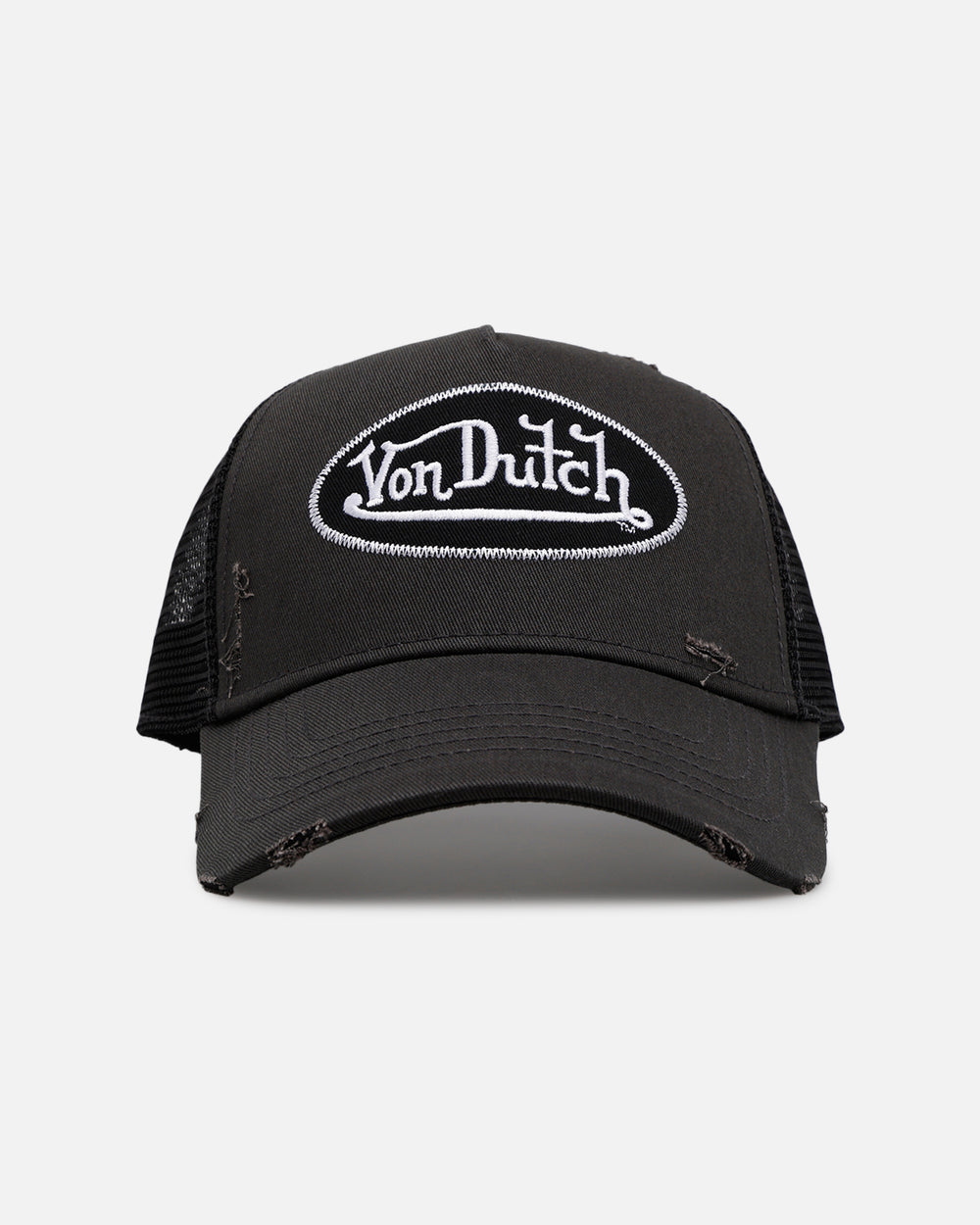 Finish off your 'fits with Von Dutch's fire new headwear drop. The Torn Trucker Snapback is built to last and look good doing so, featuring an embroidered logo, a snapback closure and a pre-curved brim, this piece is a must-have. Mesh back panels add breathability and that classic trucker feel. Secure yours today at Culture Kings while stocks last.