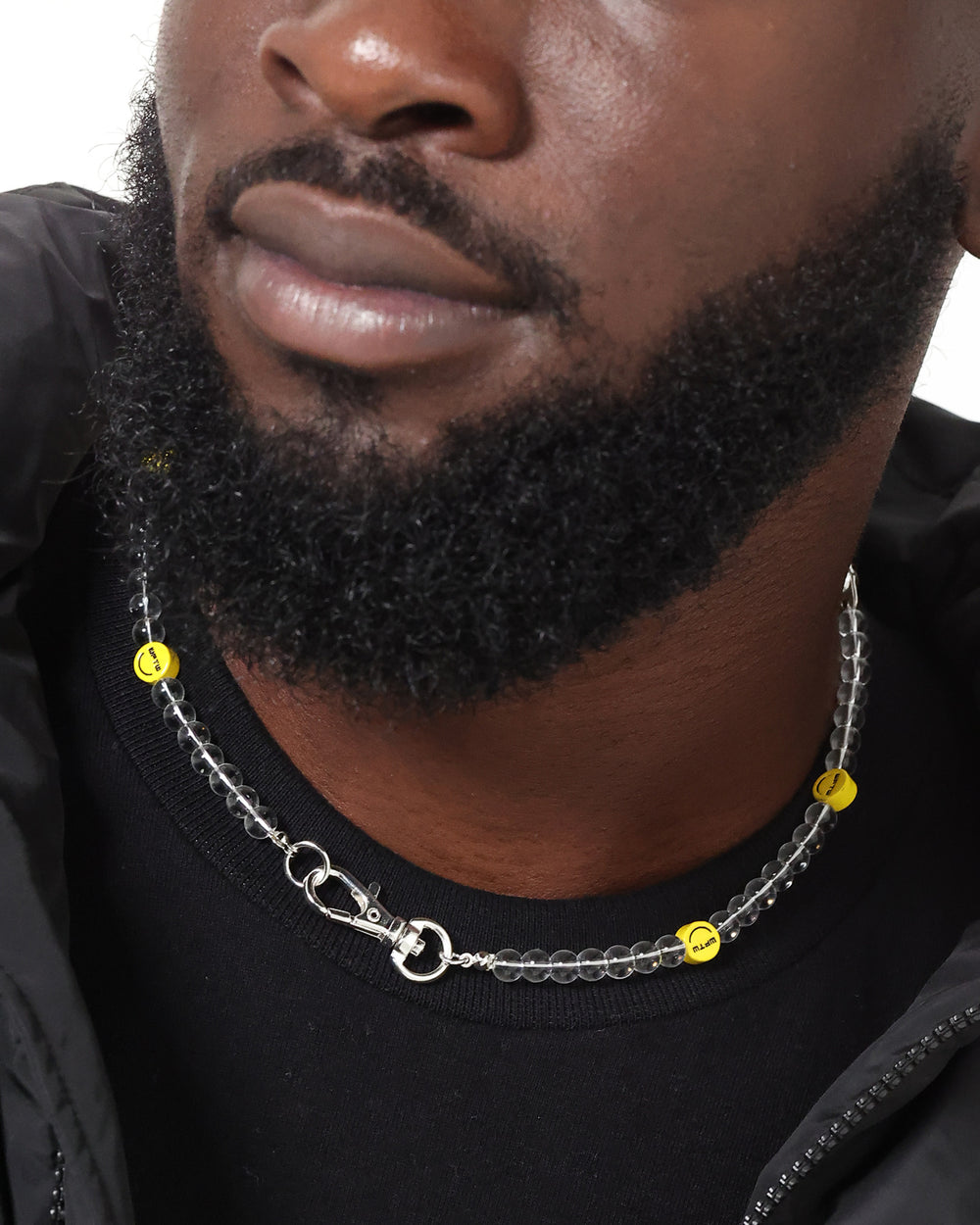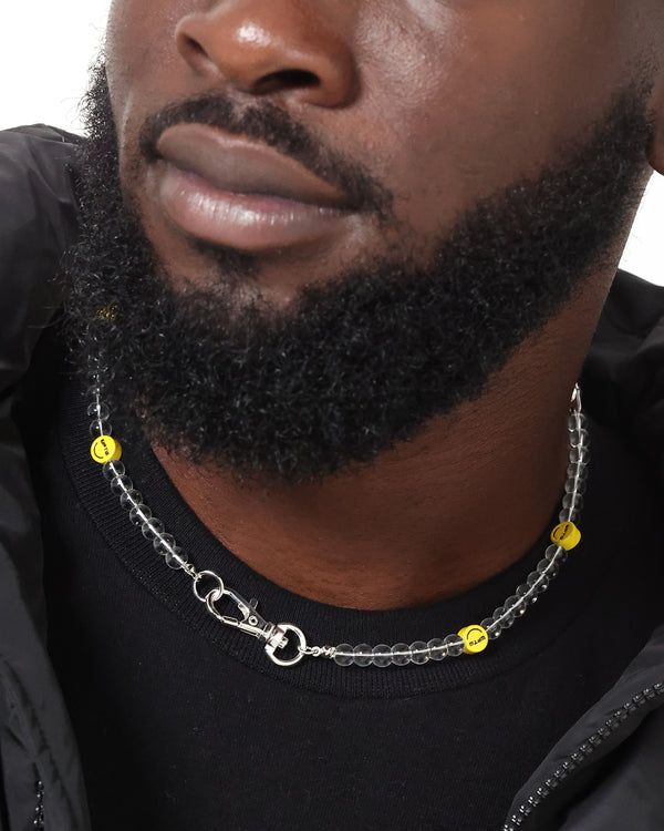 Keep the basics in action with the Smiley Beaded Necklace. Clear and silver beading pairs with bright yellow smiley beads for a simple look. The piece your outfit needs, cop yours today!